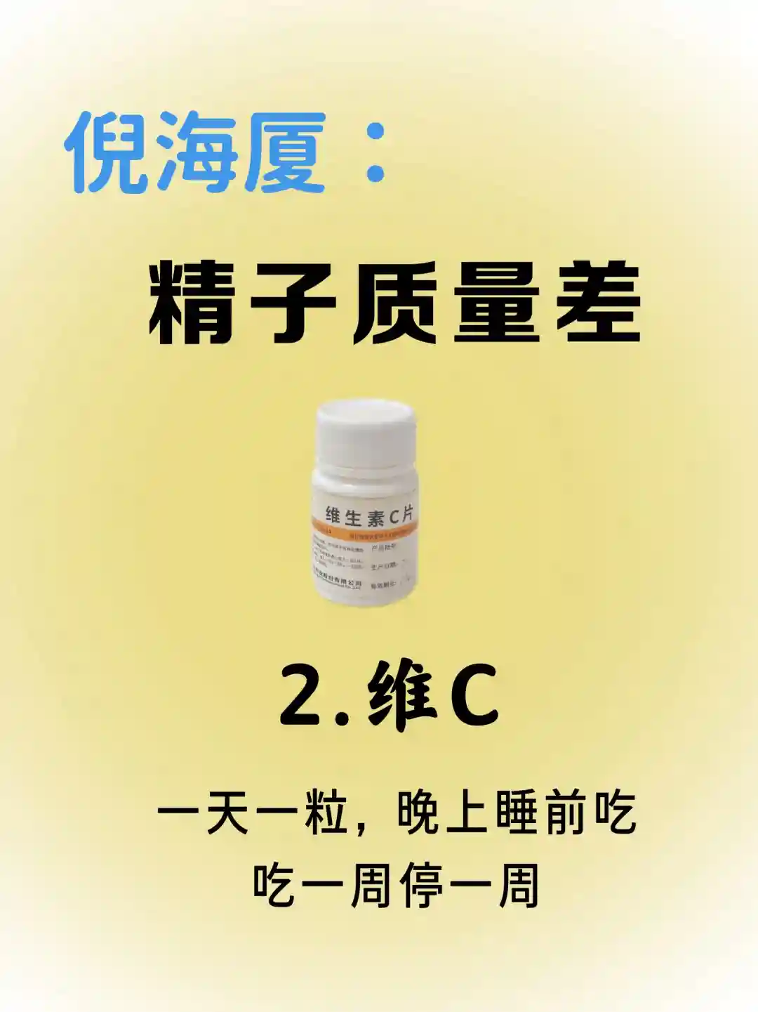 维生素C:1天1粒,晚上吃