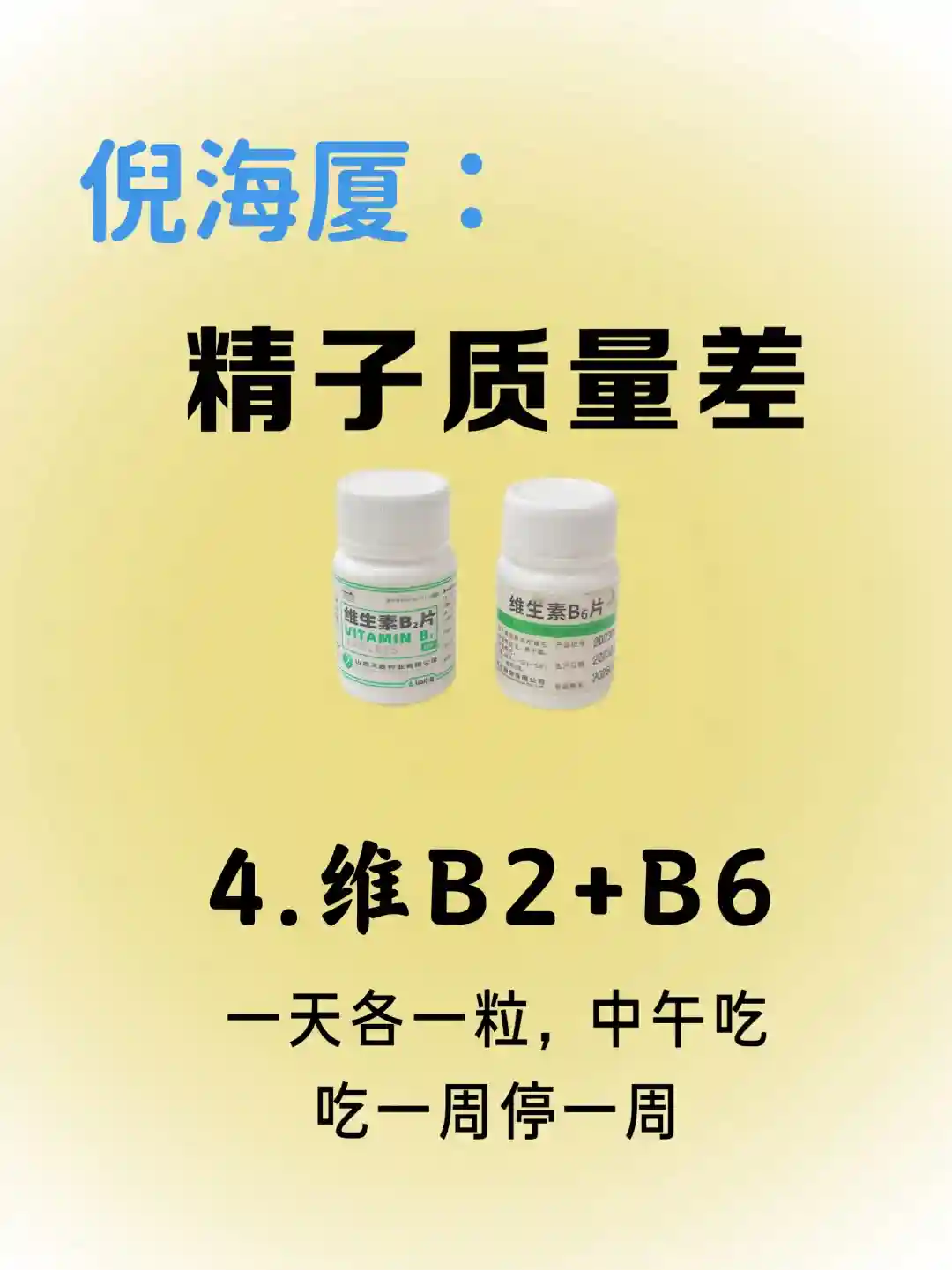 番茄红素:一天两次,一次一粒维生素B2+B6:1天各1粒,午饭后