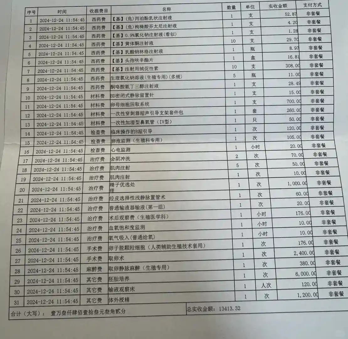 截止到一促一移失败,我个人共计花费55000元左右(因为我还在中医科买了敷肚子的药包等,具体费用未统计)所以如果不办VIP,一代🧪一促一移费用大概就是四万多左右