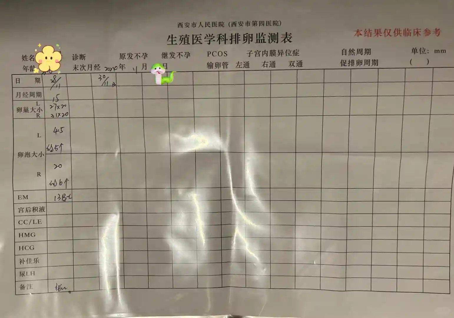 咱就是说,近期开始认真备孕啦,想着借助科学手段,看看泡泡形状和大小正不正常,精准掌握排卵时间,这样就能知道当周期能不能放心安排啦。之前只依赖排卵试纸,可每个人身体情况不同呀,有的姐妹一个周期都测不到强阳,有的强阳能持续好几天,还有姨妈规律但泡泡要么没长大就排了,要么过大才排,太让人焦虑了。本周期听朋友建议去了四院,我是生理期第 15 天去的,前一天自己试纸测到阳 LH45,因为还在上班只能下班去,幸好有夜间门诊,简直是打工人的救星🌟