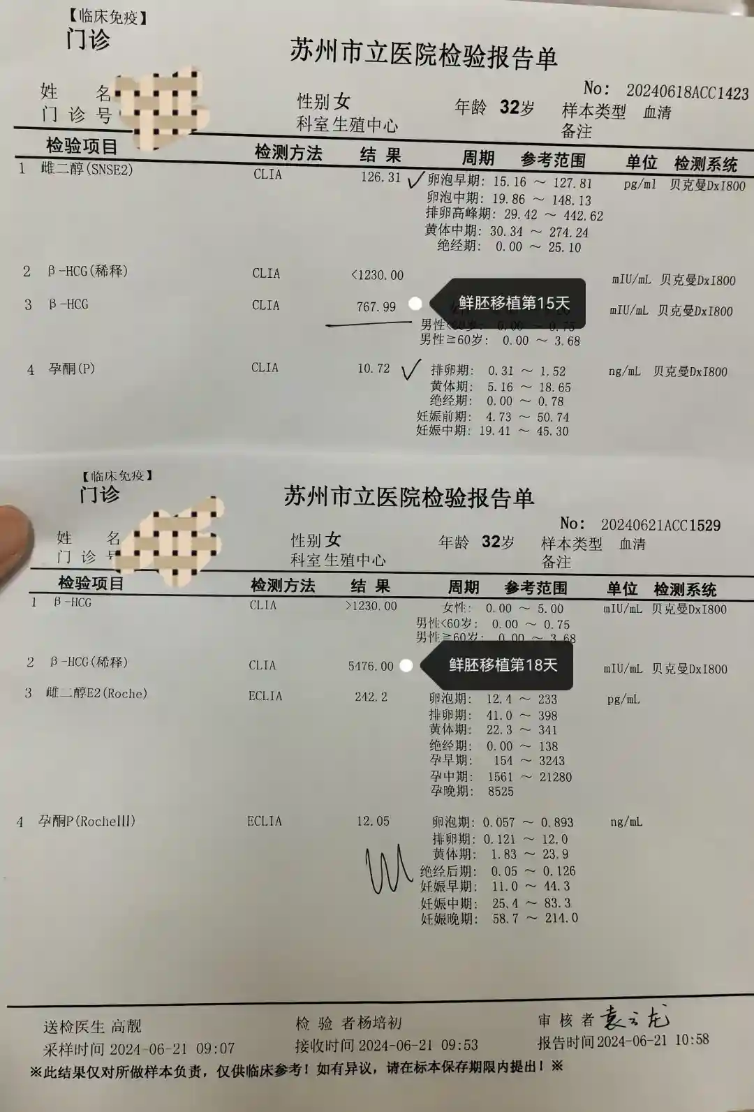 6月21日 移植第18天hcg 5476