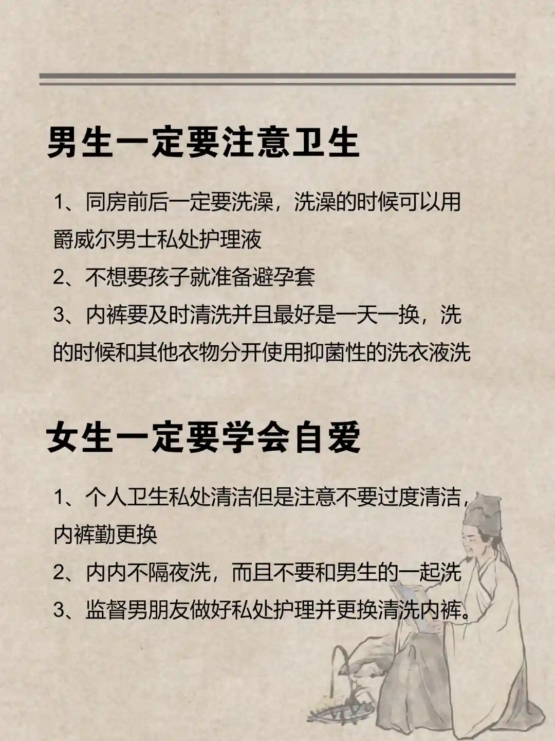 3、监督男朋友做好私处护理并更换清洗内裤。所以女生很多妇科病都是由男生间接传染过来的,一定要重视起来!