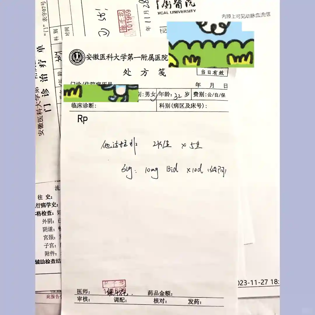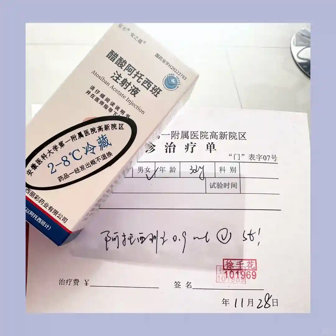 前一天的内膜报告拿给主任看了,右侧子宫动脉高阻给开了他达拉非,每天早晚各半粒塞药,说是扩张血管的,移植后正常生活,不要久坐久躺,不要剧烈运动。主任说内膜轻微蠕动,不用打阿托西班了,我还是挺紧张的,就让主任还是给我开了一支。