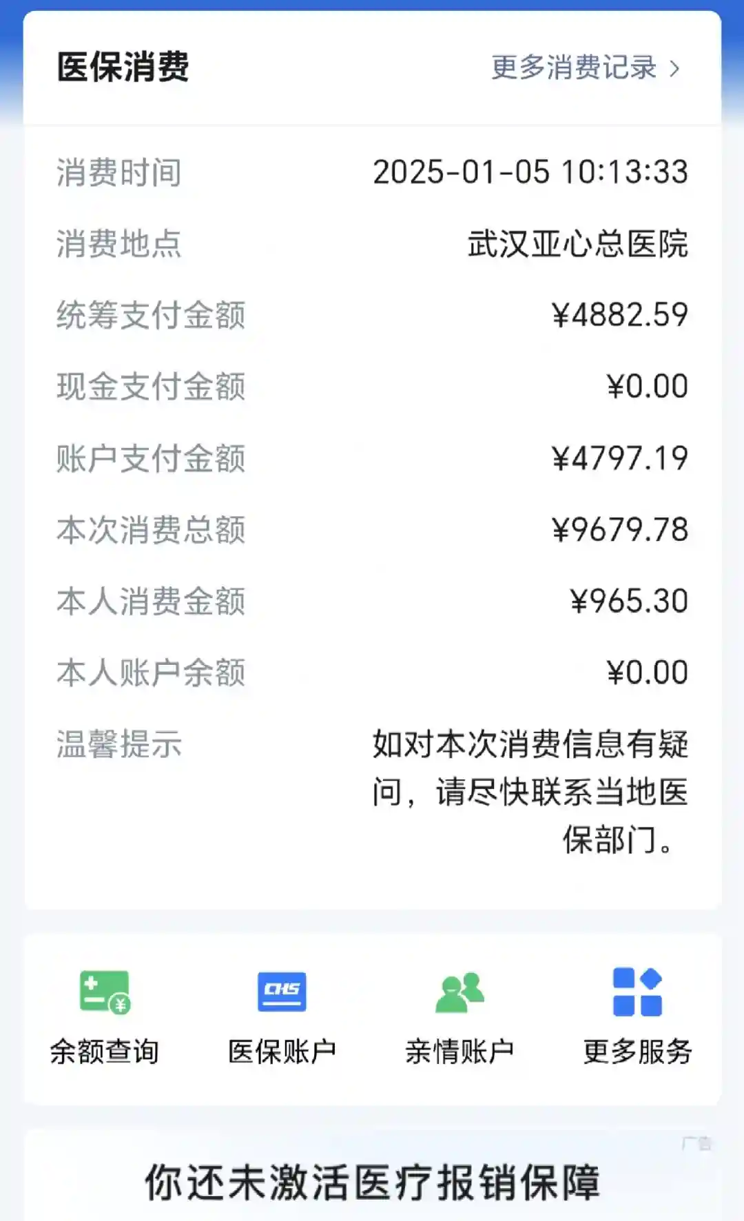 宝宝部分 花了1172 不能刷医保,要在住院押金里面扣掉