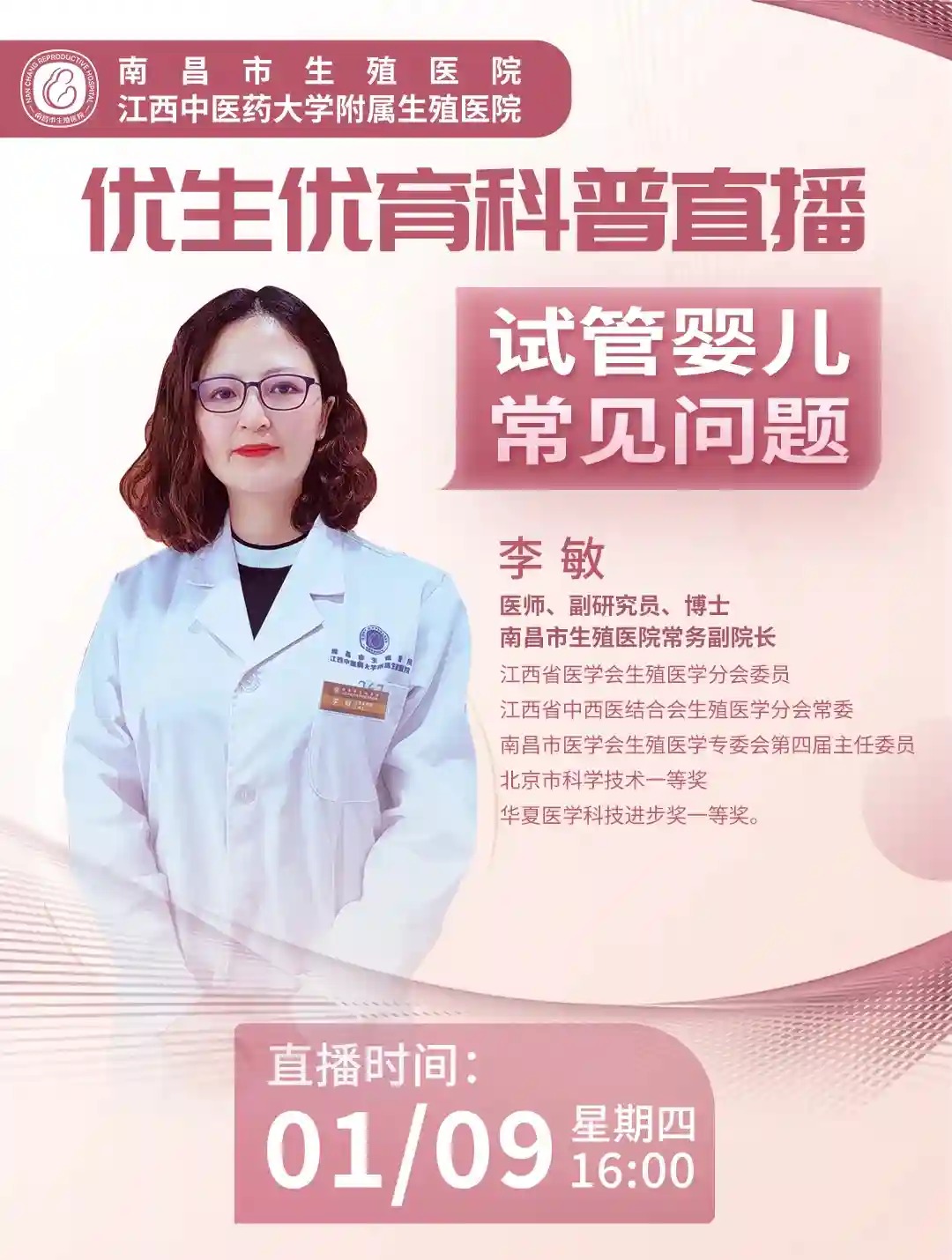 别愁啦!为帮大家把这些疑问统统扫光,咱们这期直播可太有料啦✨!特别邀请到我院常务副院长李敏👏,来给咱仔仔细细地唠唠 “试管婴儿常见问题”。