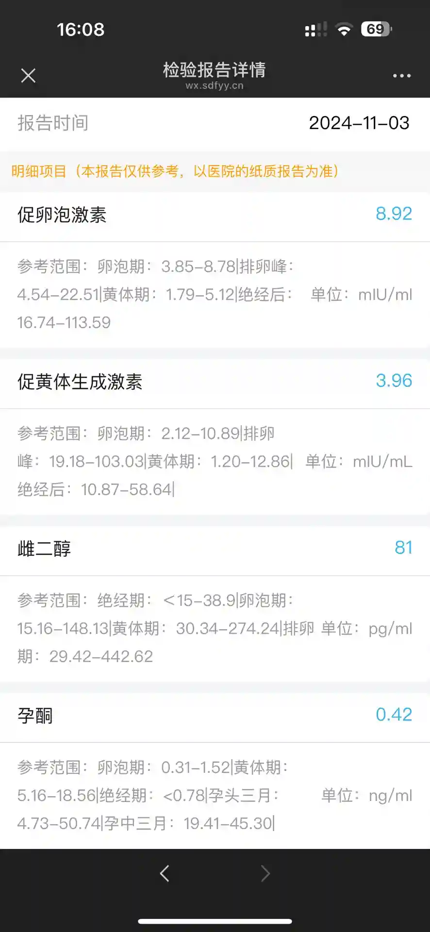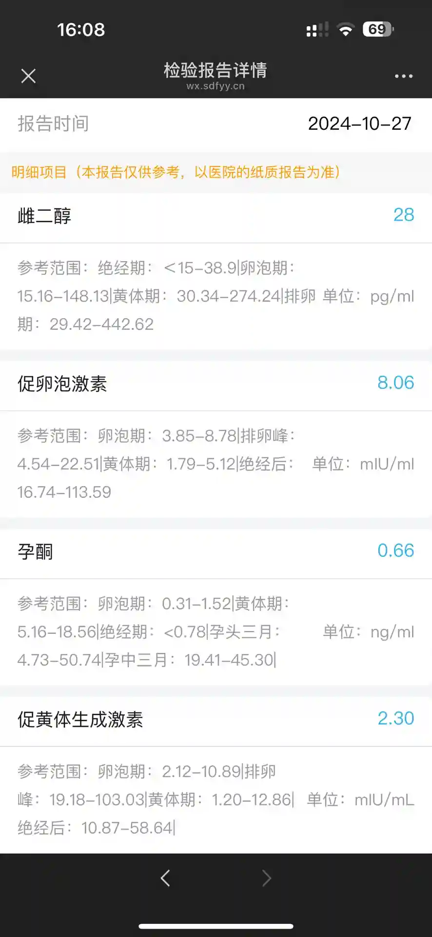试管🧪第五次促排失败了☹️,这个周期初始窦卵泡只有两个,一开始也没有报很大希望,第一次开了四天的尿促➕氯米芬,第五天反院两个都长到了12左右,雌激素92,停吃氯米芬,又打了两天尿促,第七天反院两个泡泡都15左右,雌激素138,又开了一天尿促,第八天反院,泡泡一个没长一个缩小了,雌激素掉到81,医生让放弃这个周期,下次月经再来,就很晴天霹雳,前一天都还好好的,两个泡泡也都很圆,都快接近成熟了,怎么就停止发育了呢,医生说这个情况很难解释是哪里的问题,我自己查了很多类似案例,多数都是说药剂量的问题,也不知道医生下次能不能给我调整到合适剂量,心累啊,这条路不知道什么时候能走完,希望能早日上岸!