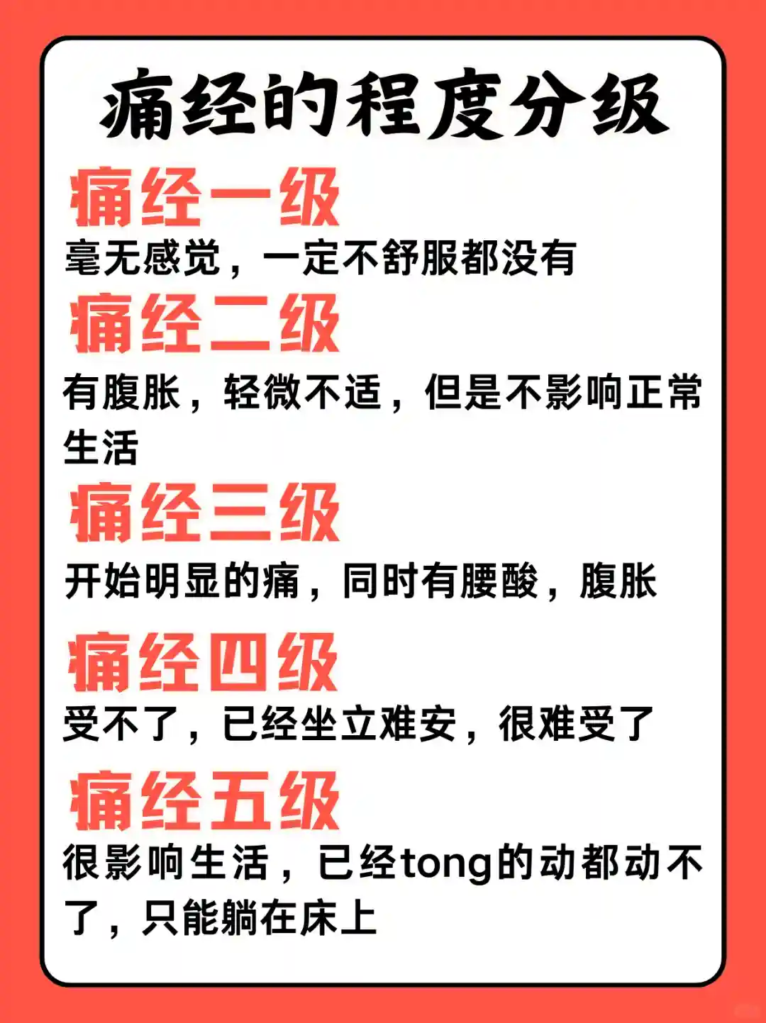 痛经五级:很影响生活,已经tong的动都动不了,只能躺在床上
