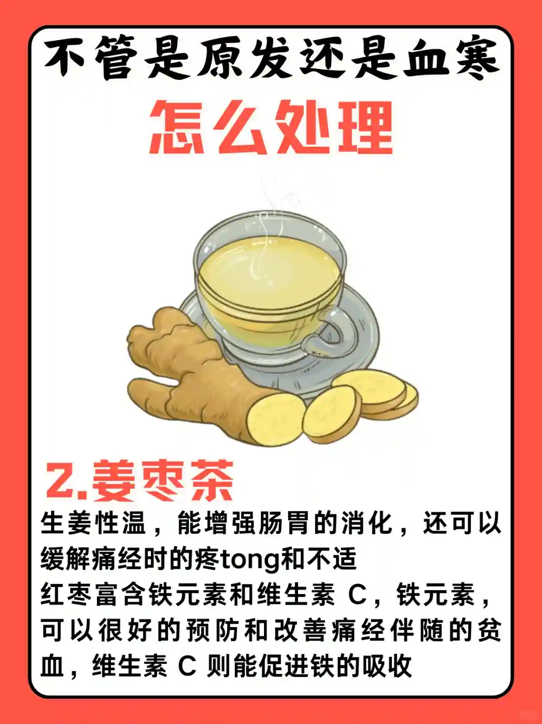 红枣富含铁元素和维生素 C,铁元素,可以很好的预防和改善痛经伴随的贫血,维生素 C 则能促进铁的吸收