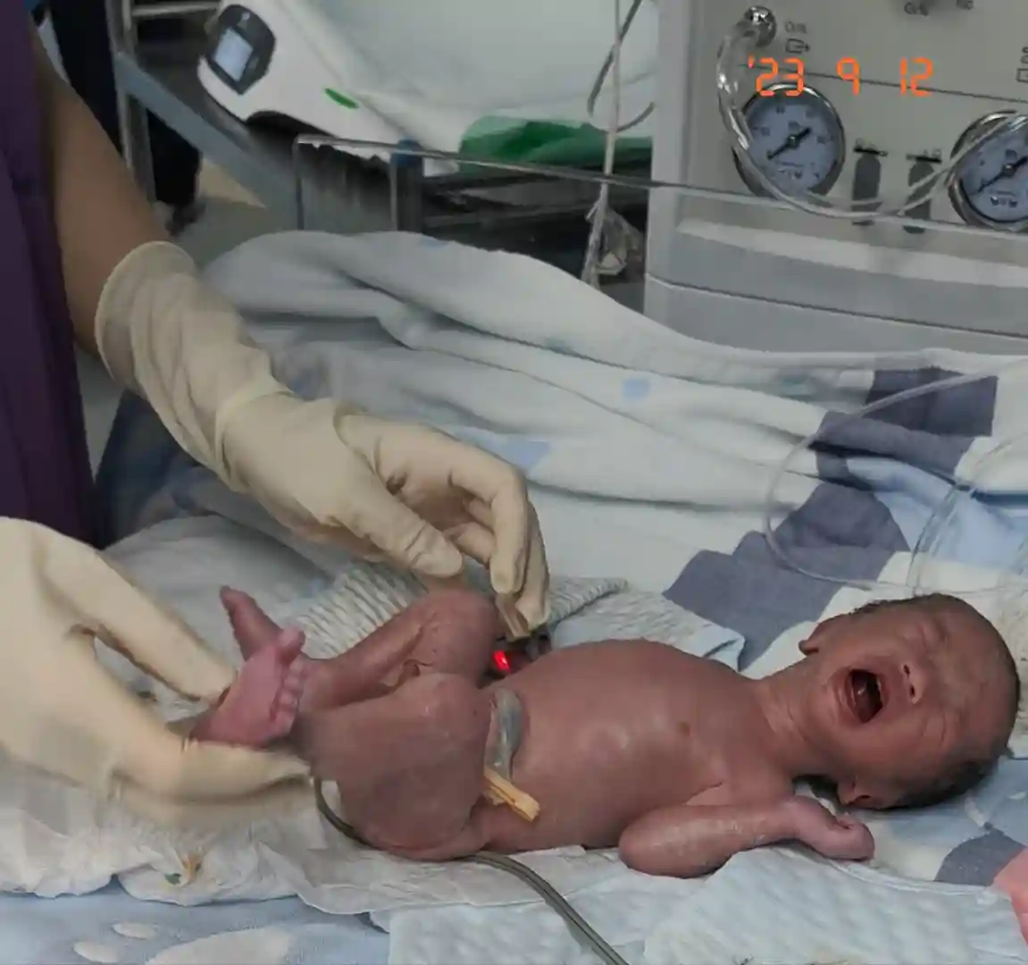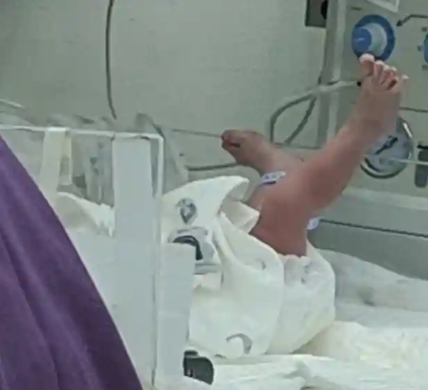 另一个新生儿举着脚丫子