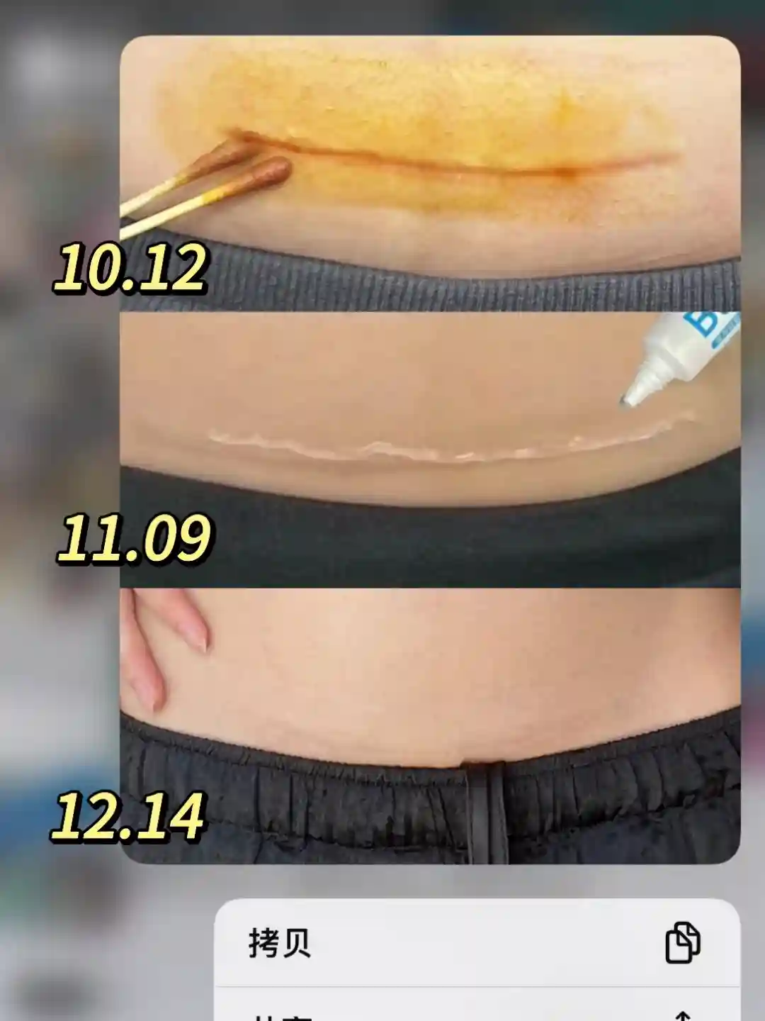 1.欣本硅酮凝胶痂皮完全脱落后就可以开始涂硅酮凝胶了,添加了进口医用硅酮成分还是母婴款的,哺乳期也可用,淡化疤痕的同时有效抑制增生!我也就坚持涂了个把月,肚子上也只剩一条浅浅的白线啦拾
