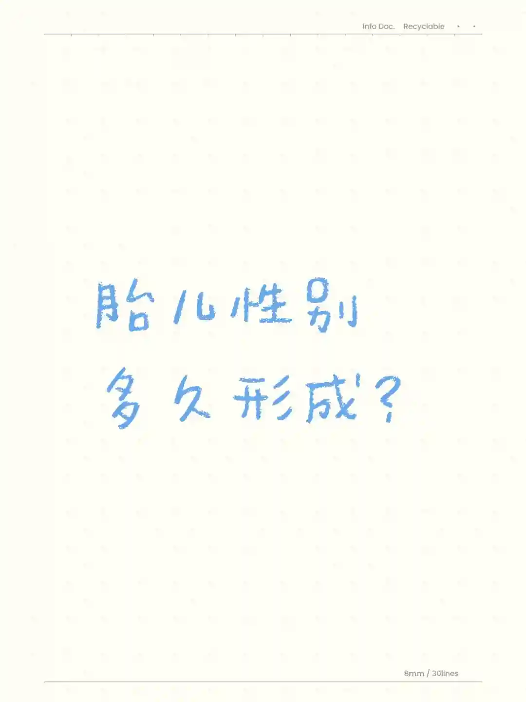 在怀孕5~6周的时候胎儿的原始生殖器就初步成形,女宝宝的原始生殖腺发育成卵巢;男宝的原始生殖腺发育成gao丸。