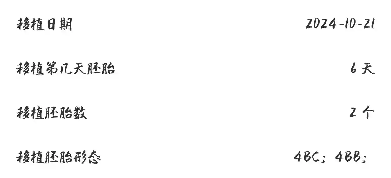 2024年10月21日 移植两个囊胚D6-4BB,D6-4BC,最后剩4个囊胚了,从之前9个囊胚到现在剩4个囊胚了