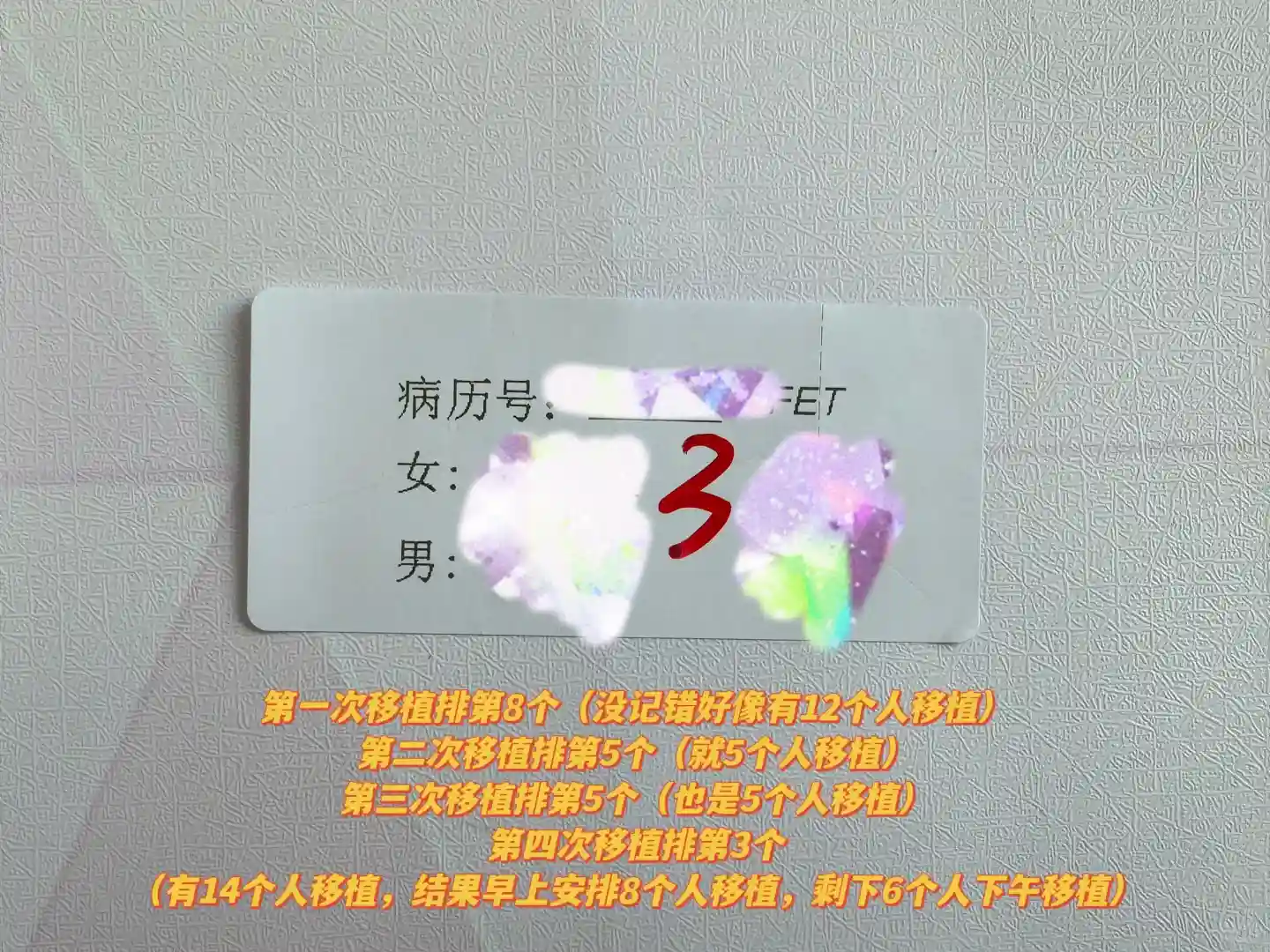 这样子人家可以直接下午来 也不用一大早跑过来了 我移植了这么多次还是第一次分早上移植和下午移植的可能今天人太多了 而且等移植的时候签完名字后才确定谁排第几个 所以可能这个没办法提前告知大家