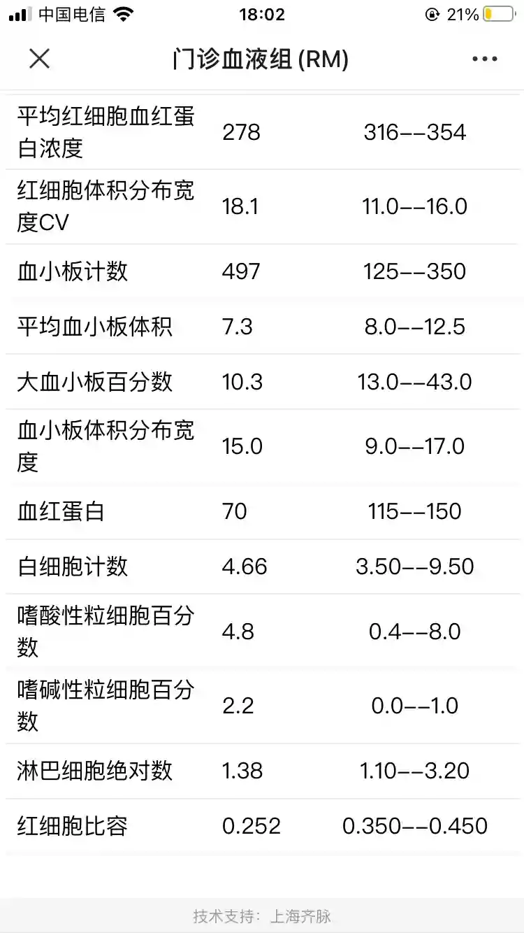 让我难受的不仅仅是我严重贫血,更重要的是我的AMH严重下降,33岁第一次查4.7,去年36岁查3.5,今年只有1.88,衰老的速度越来越快了!