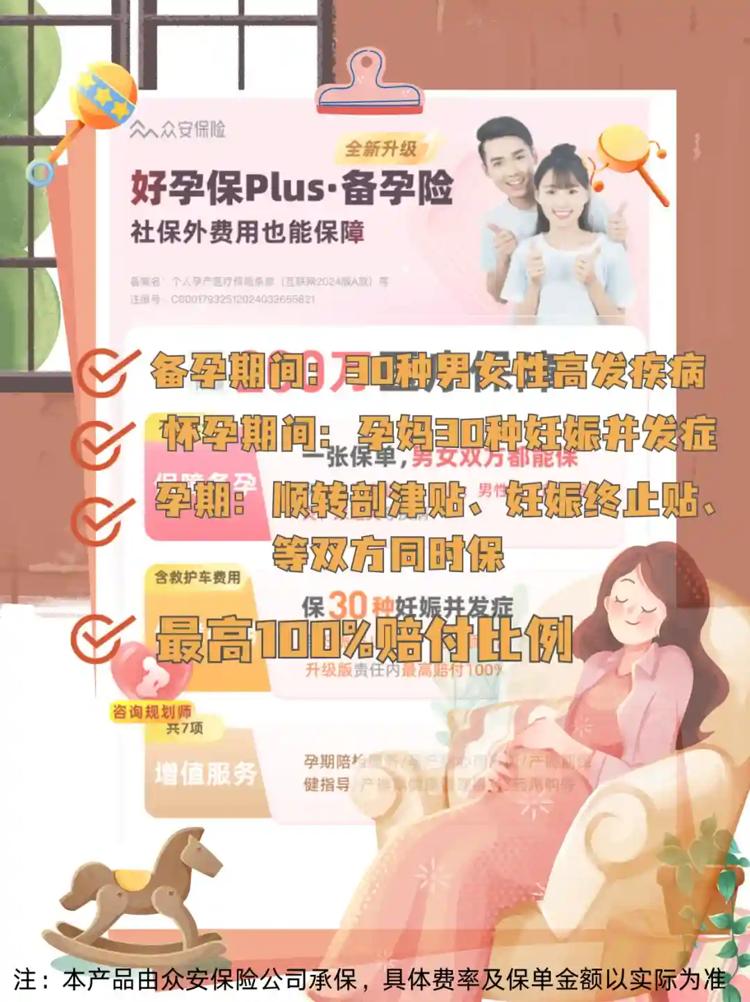 选择众安好孕保Plus备孕险,1份保障,从备孕一路呵护至生产 🚦!