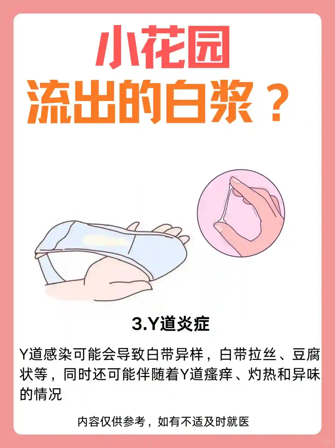 3.Y道炎症小花园出现炎症也会引起白带拉丝,同时还可能伴随瘙痒、灼热和异味