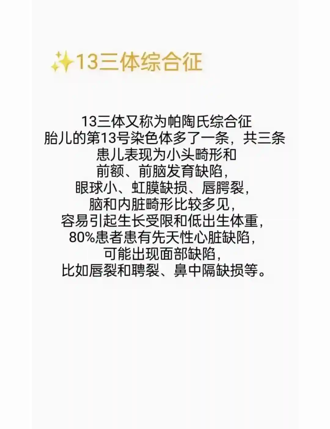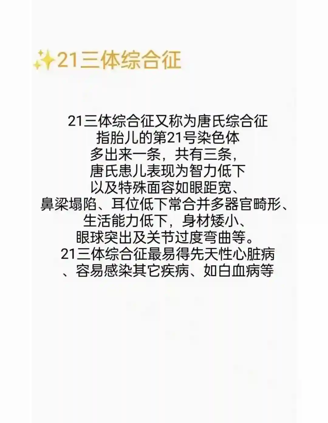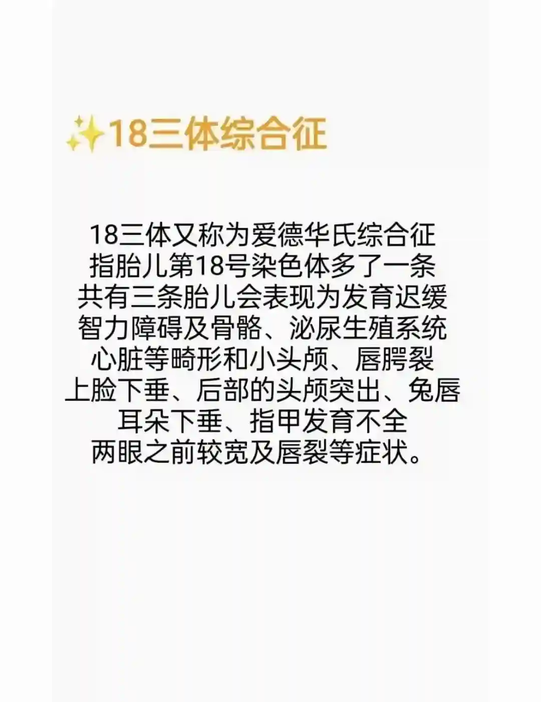 导致三体综合征。此外,还可能与染色体发生异常不分离现象、不平衡罗伯逊易位、嵌合现象等因素有关。#胎儿