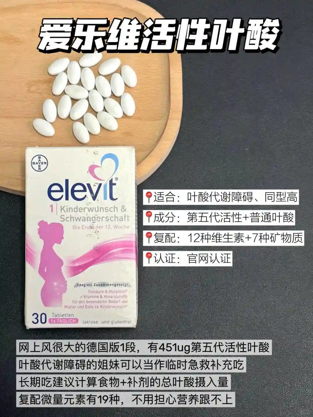 成分:500ug活性叶酸(未标注第几代)
