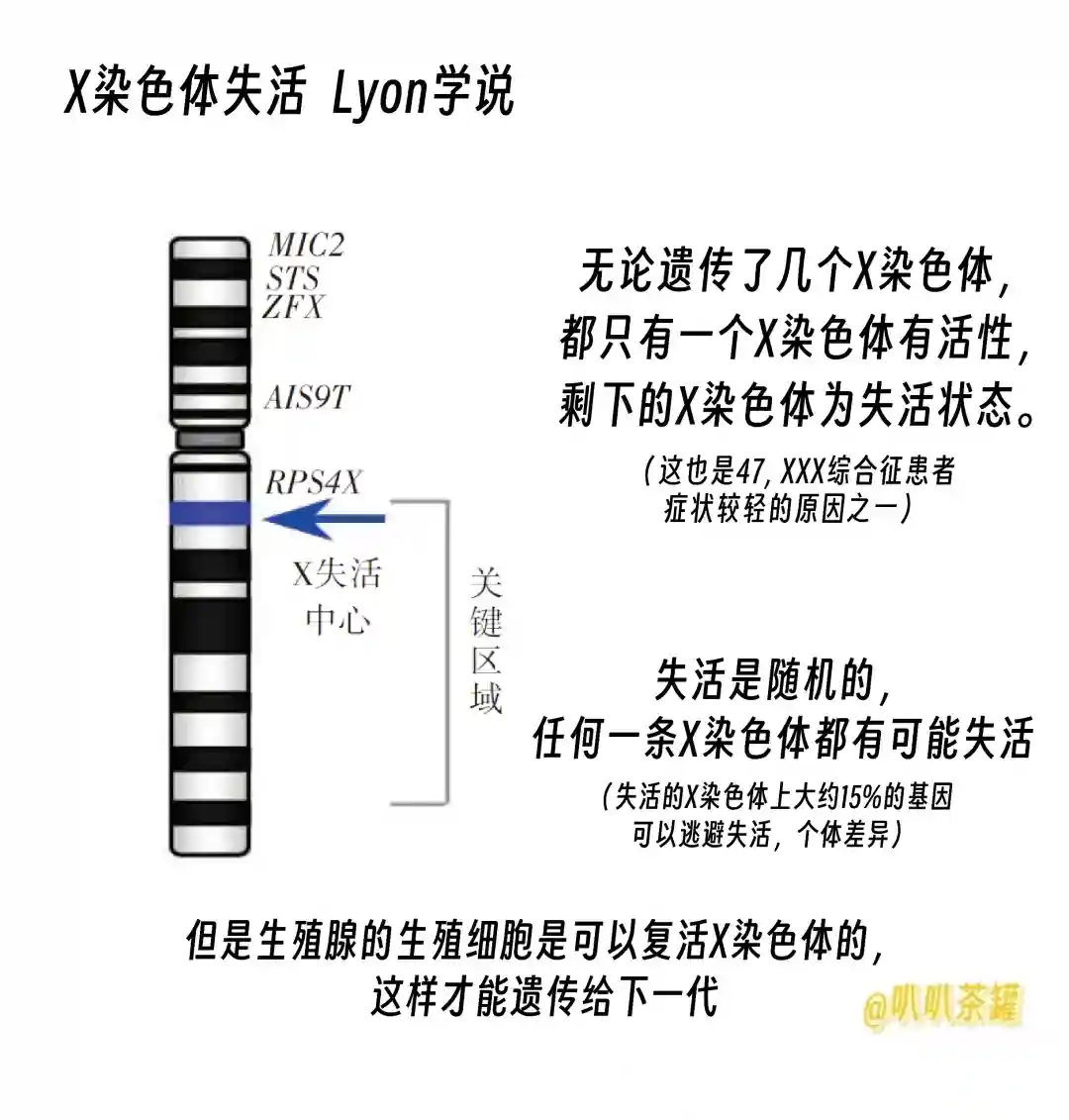 🔬这就需要引出Lyon假说,也叫里昂化作用。这个假设很好的解释了基因剂量问题: