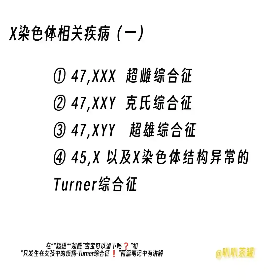 💡X染色体相关疾病大多为新发,染色体正常夫妇怀孕的再发风险低。