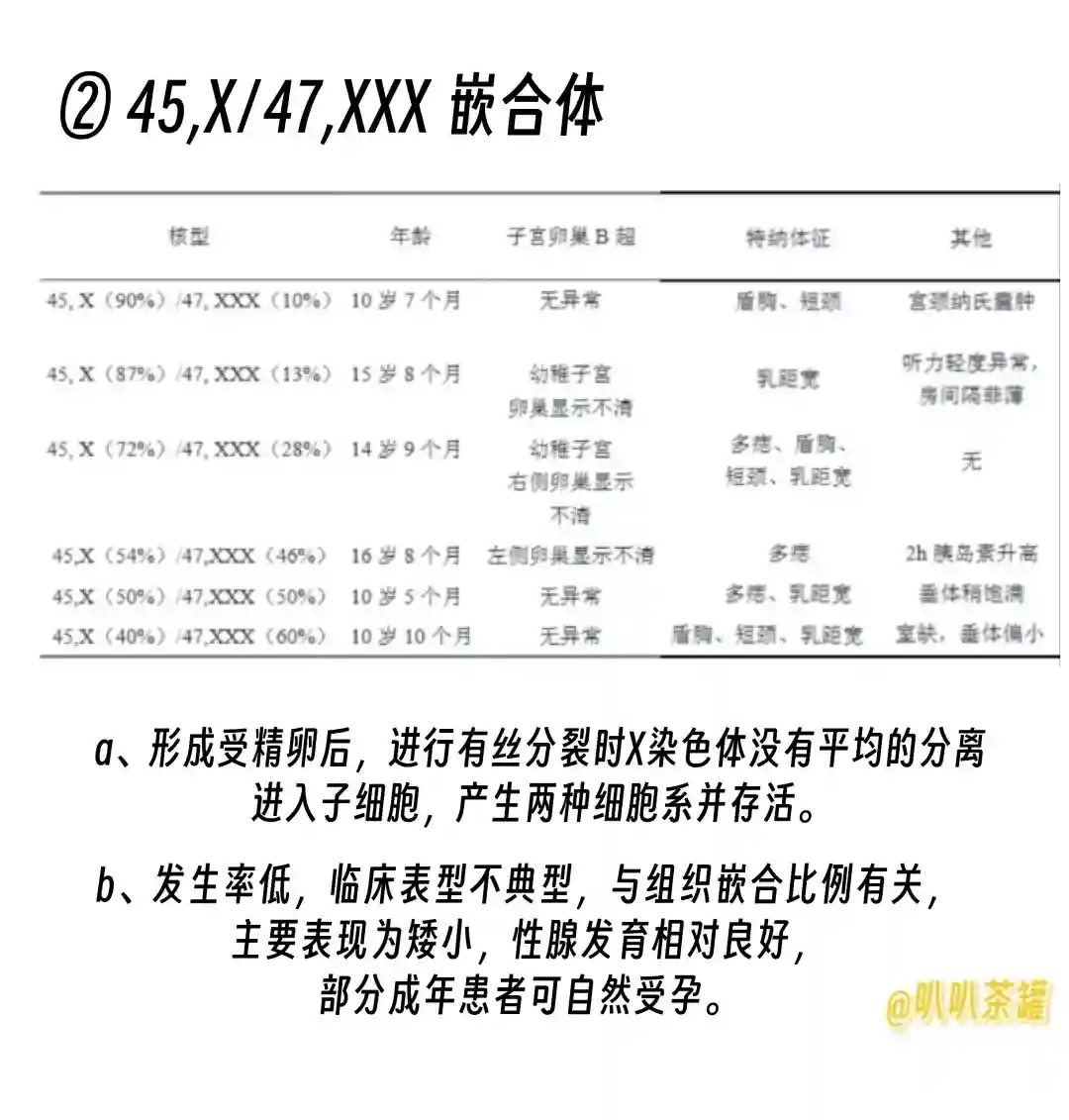 🔖与X染色体有关的Turner综合征中的嵌合体异常仍是研究热点,也是难点。