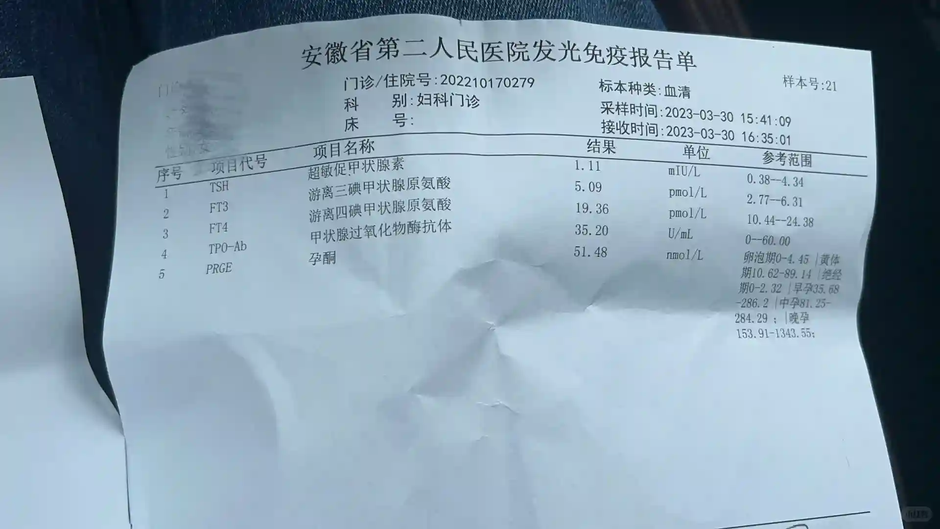 隔天早上手机查报告51小单位孕酮 上图三 换算成大单位才16左右 孕酮掉了 我赶快去医院挂号复诊还是昨天的医生说正常的没有问题 我反复问昨天你说我大单位孕酮低今天这个单位不低吗 人家说正常