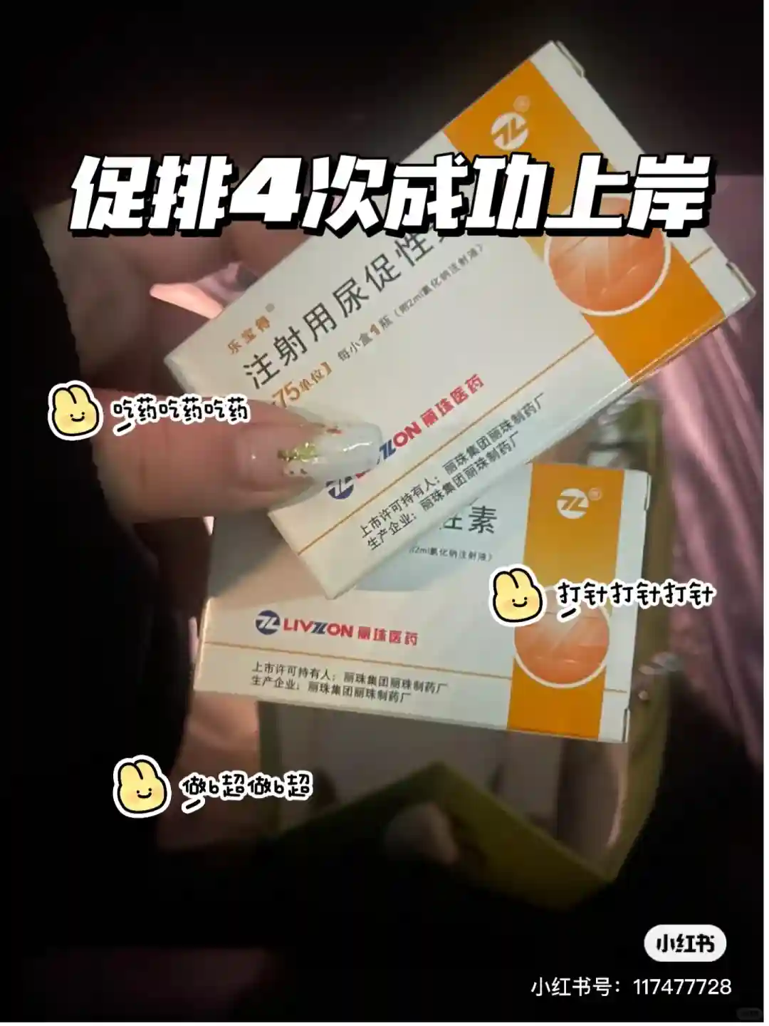 促排期间就是一直在打针,有好几个牌子的针,如果你们用一种效果不够好,可以试试换个牌子,期间不要太焦虑,我4次中有2次是验孕棒诈胡,有什么水印啊之类的都是骗人的,我去抽血结果根本没有