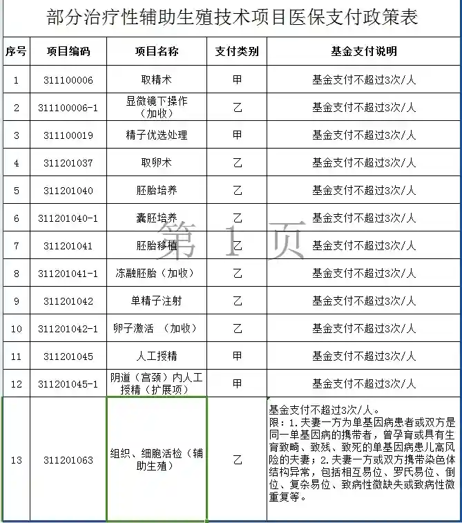 ◆13项可报:取卵术、胚胎培养、胚胎移植、组织细胞活检、人工授精、精子优选处理、取精术、单精子注射等;