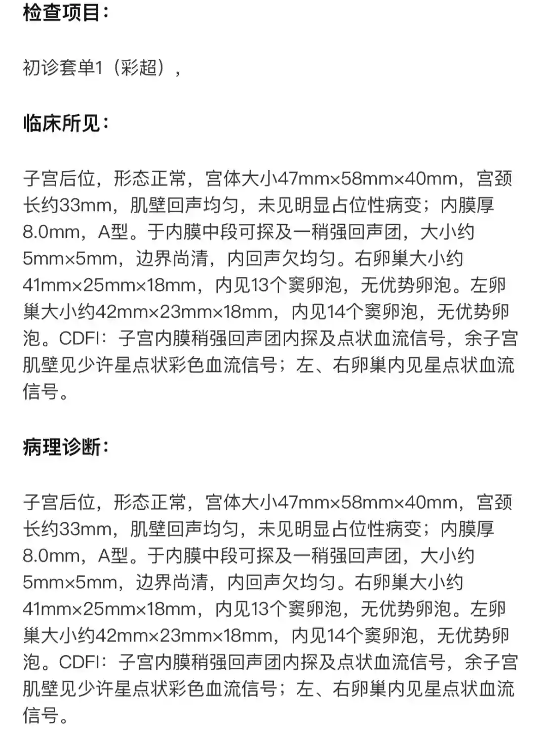 4⃣️当天的检查没有什么问题,但是疑似有息肉我去年10月引产的时候宫内有残留,我没有选择清宫,喝了两周中药,吃了一周的米菲复查了两次残留没有了。不懂是不是这个影响的。