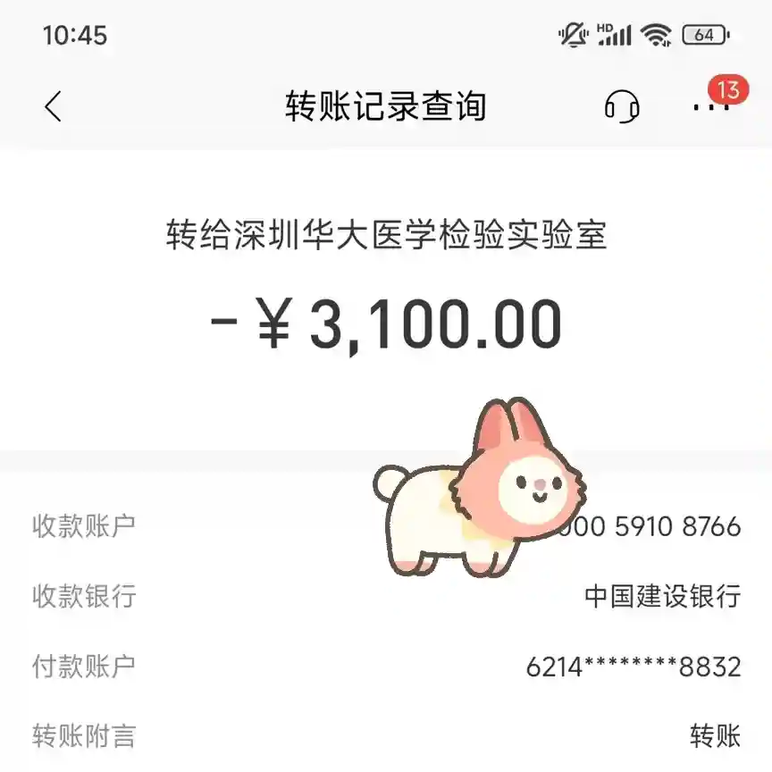 医生说先不用处理它,等取完卵或者取卵前再处理。5⃣️5月26日找了华大基因给我表弟(因为表弟是家族史致病患者)做全外显基因检测,费用3100。这个检测送了两个免费的验证名额,所以我也顺便做了,看看自己有没有携带家族史遗传的基因。史博士建议报告出来后再促排,基因检测报告大概是25个工作日的时间才出。所以慢慢等吧#南宁试管 #南宁三代试管