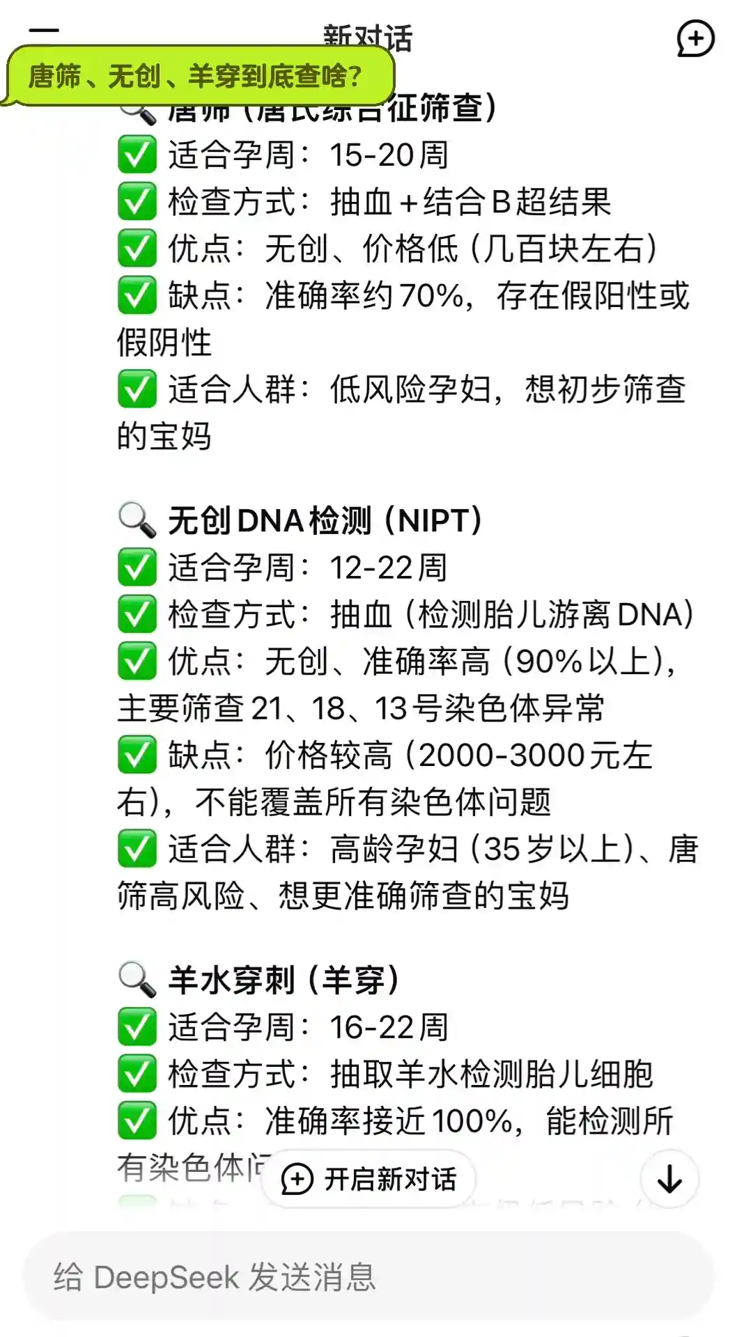 #deepseek #产检 #无创 #唐筛 #羊水穿刺 #怀孕那些事 #二胎妈妈 #唐氏综合征 #染色体异常