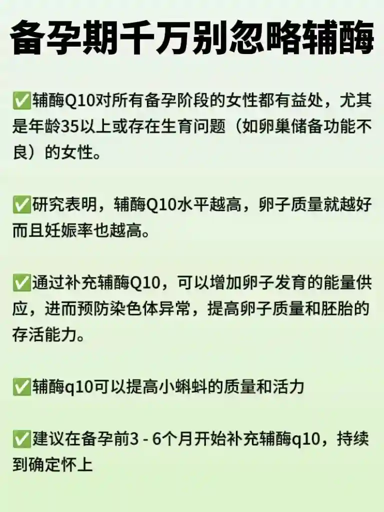✅建议在备孕前3 - 6个月开始补充辅酶q10,持续到确定怀上