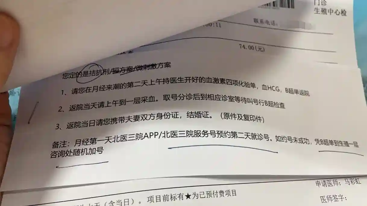 马老师为我制定了拮抗剂方案,按照流程例假后第二天进行抽血、打针以及排卵检测。我打的针是普利康,进口药腹部注射;同时还有丽申宝臀部注射。北医三与福州妇幼注射有个区别,北医三需要自己把每天打的药量取出来给到护士注射,即培养大家对于剂量的概念。感觉他们会更注重病人对于自身病理的认知和掌握。而福州妇幼是护士根据提供的药单自行取对应剂量的药来打针,无需病人操心。
