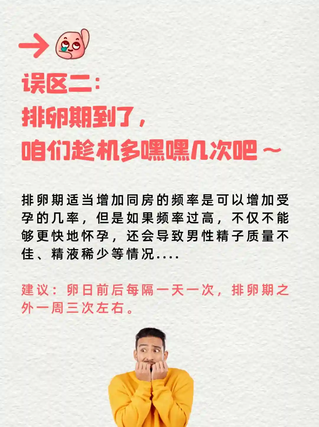 2⃣️误区二:排卵期到了,咱们趁机多嘿嘿几次吧~