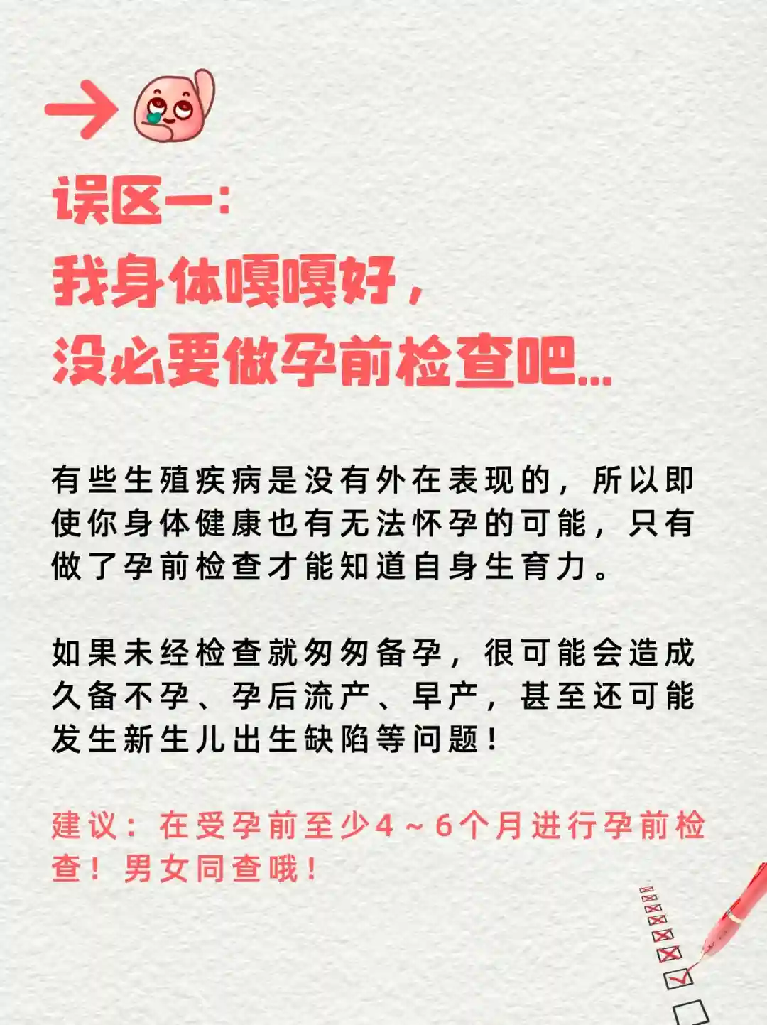 我身体嘎嘎好,没必要做孕前检查吧...