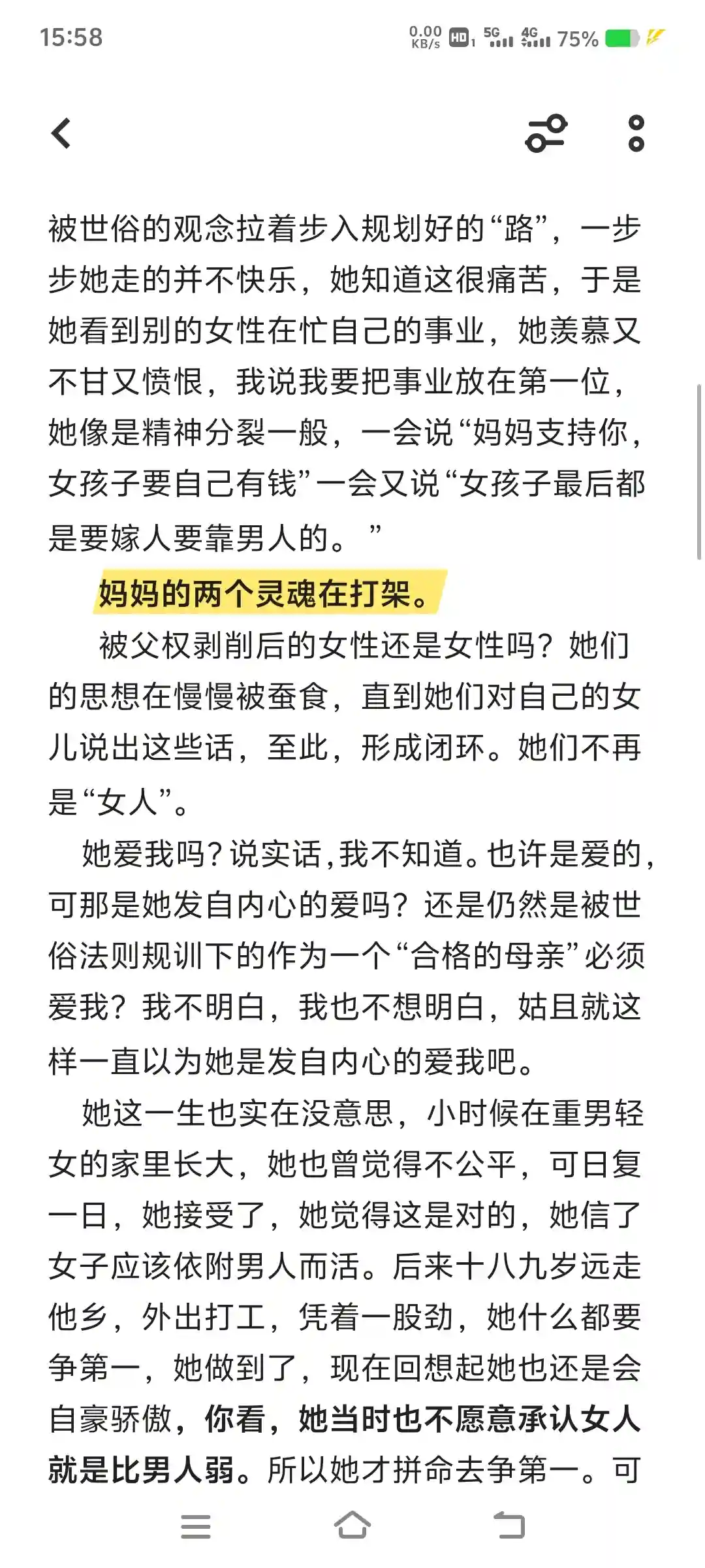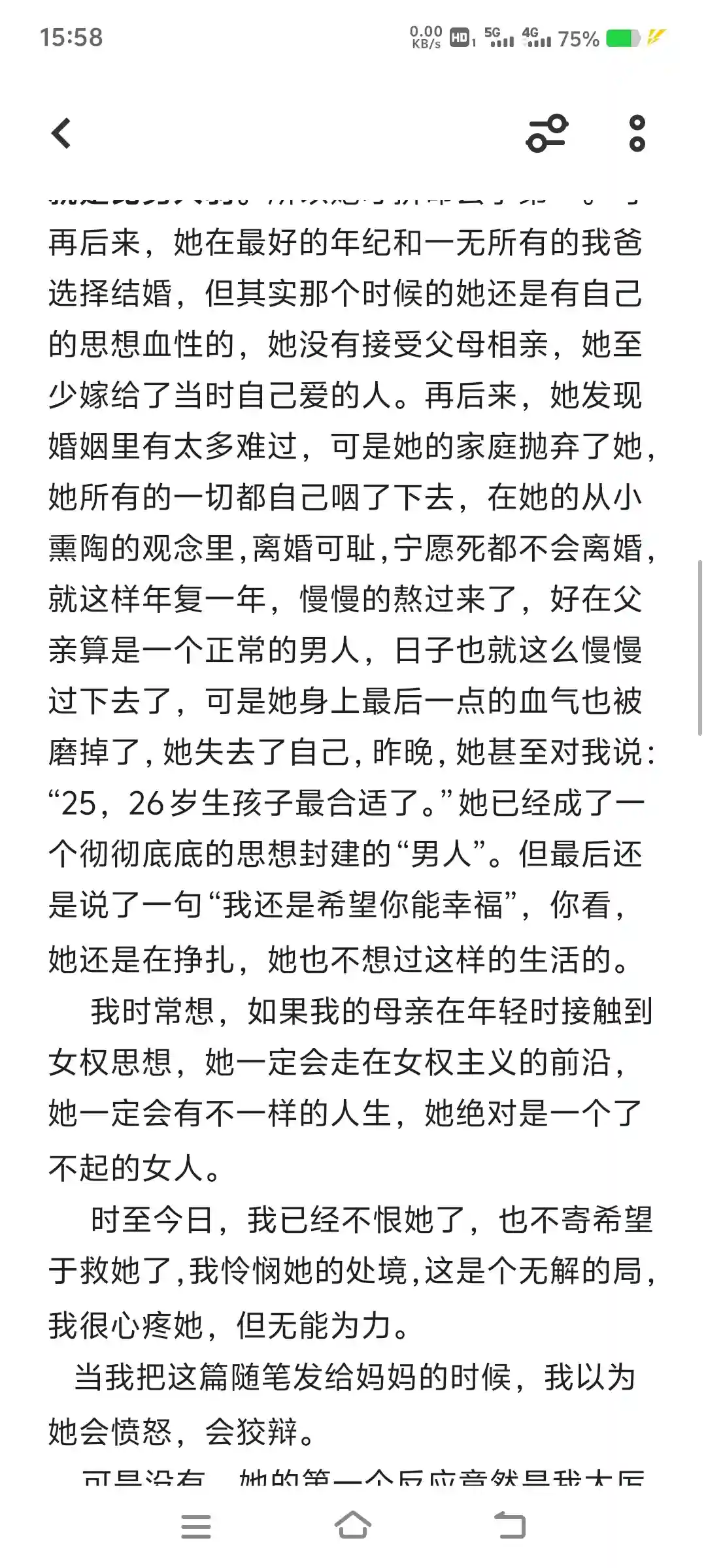 我常想,如果我的母亲在年轻时接触到女权思想,她一定会走在女权主义的前沿,她一定会有不一样的人生,她绝对是一个了不起的女人