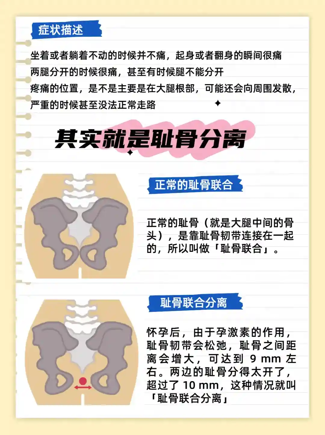 ✨适当运动别偷懒。在身体条件允许的情况下,可以做一些温和的运动进行预防,像孕妇瑜伽里的简单伸展动作。这些运动能让盆底肌肉和腹部肌肉更有力,减轻耻骨的负担。但如果已经疼痛了,就怎么舒服怎么来,卧床休息就好。