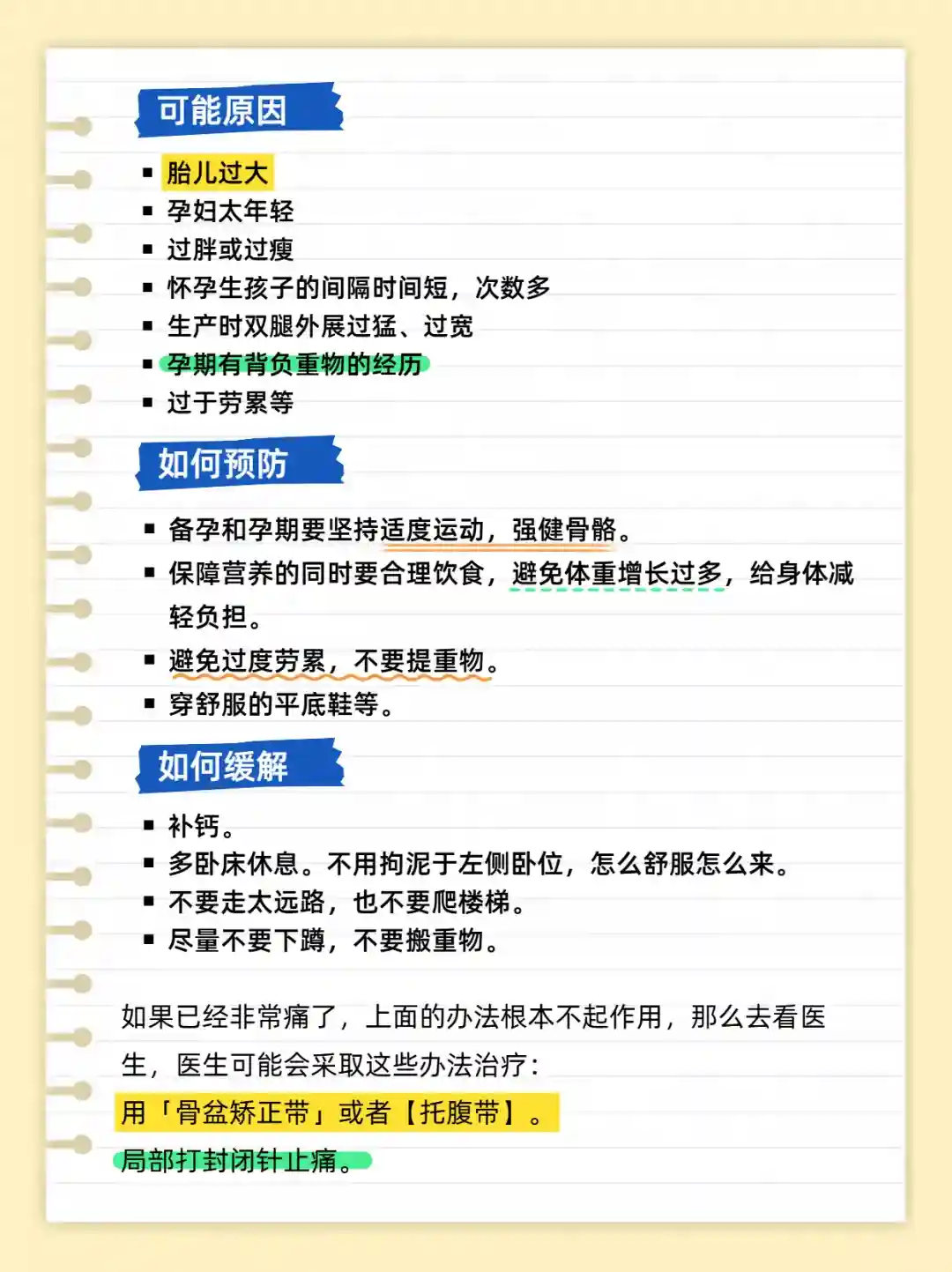 ✨借助物品来帮忙。选椅子的时候,挑那种能给腰部提供良好支撑的,坐下后腰部能舒服靠在椅背上。睡觉的时候,在两腿之间夹个枕头,骨盆会感觉稳定很多,疼痛也能减轻一些。还有孕妇专用的托腹带,它能帮着分担腹部对耻骨的拉力,用了之后会轻松不少。