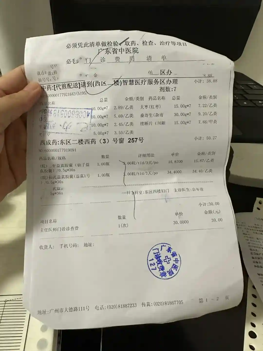 国庆外出想让她多开几副药,还是开了7天,然后多开两瓶中成药,开药一直都不贵!