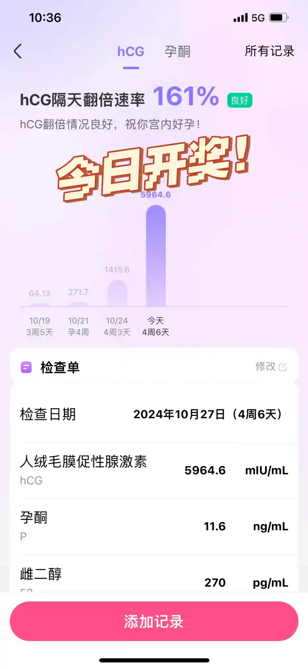 10/21天佑复查翻倍,第十一天hcg270+,翻倍成功。继续打了一针绒促💉和一针立生素。