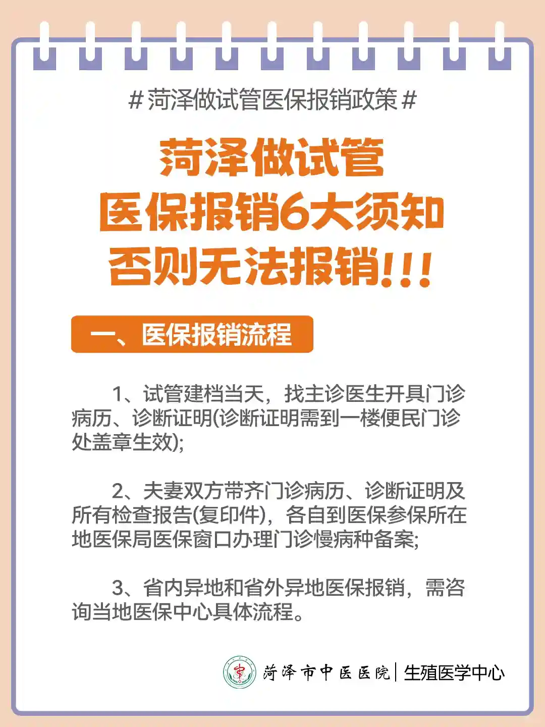 菏泽做试管医保报销6大须知,否则无法报销