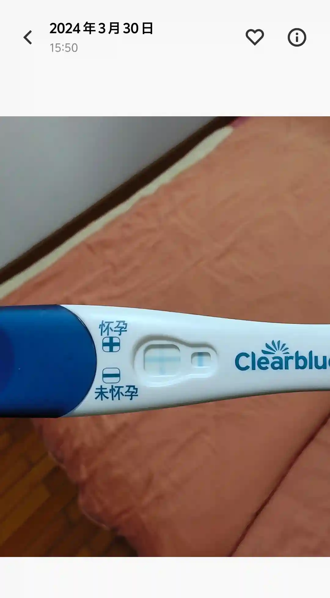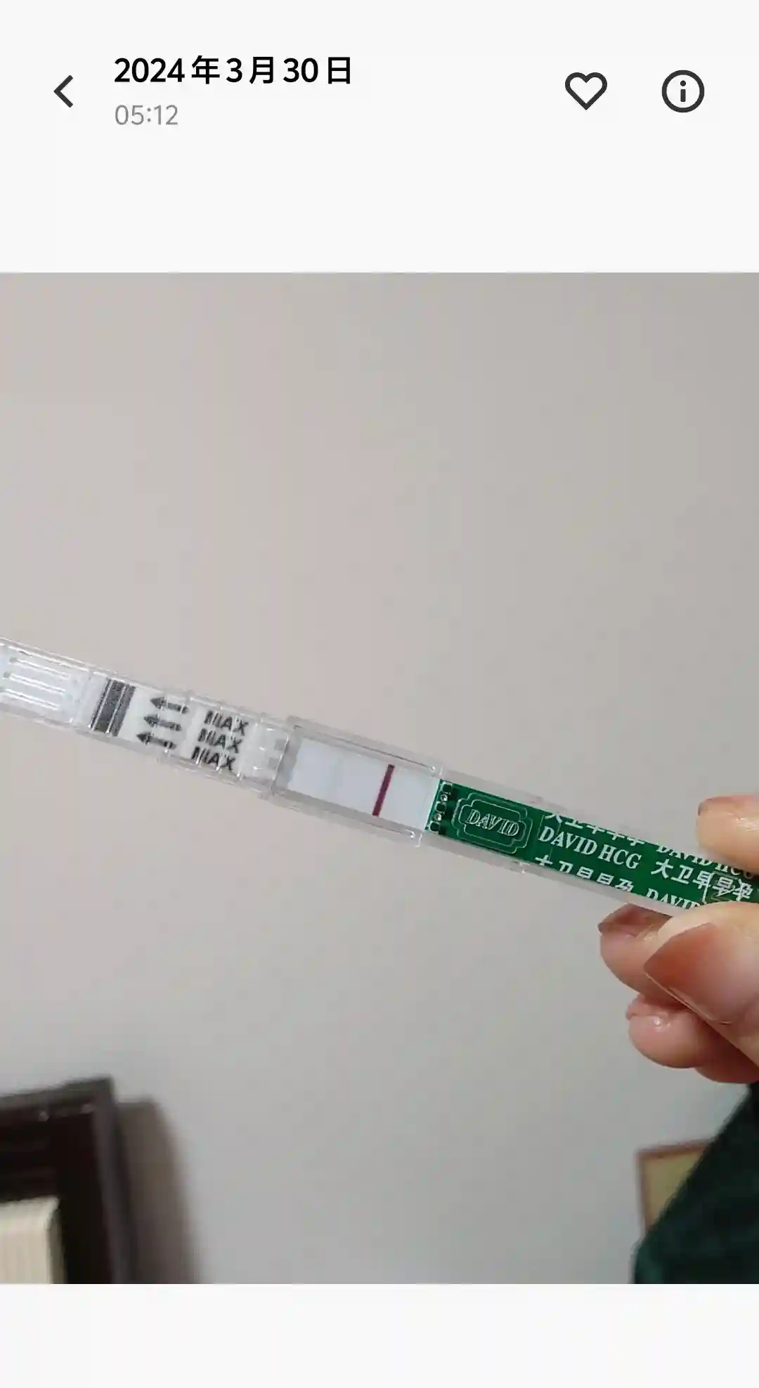 24年3月30日凌晨,想着距离PL也有个十来天了,拆了根大卫水晶棒,竟然有弱弱弱弱弱弱阳,怕炸胡,当天下午又测了根可丽蓝,很明显的十字架,次日医院验HCG,确认怀孕。