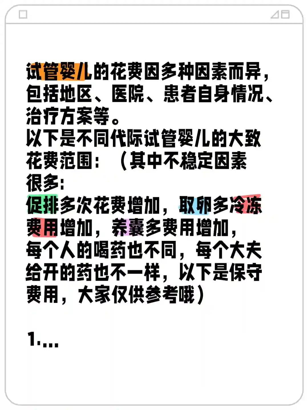 促排多次花费增加,取卵多冷冻费用增加,养囊多费用增加,每个人的喝药也不同,每个大夫给开的药也不一样,以下是保守费用,大家仅供参考哦)