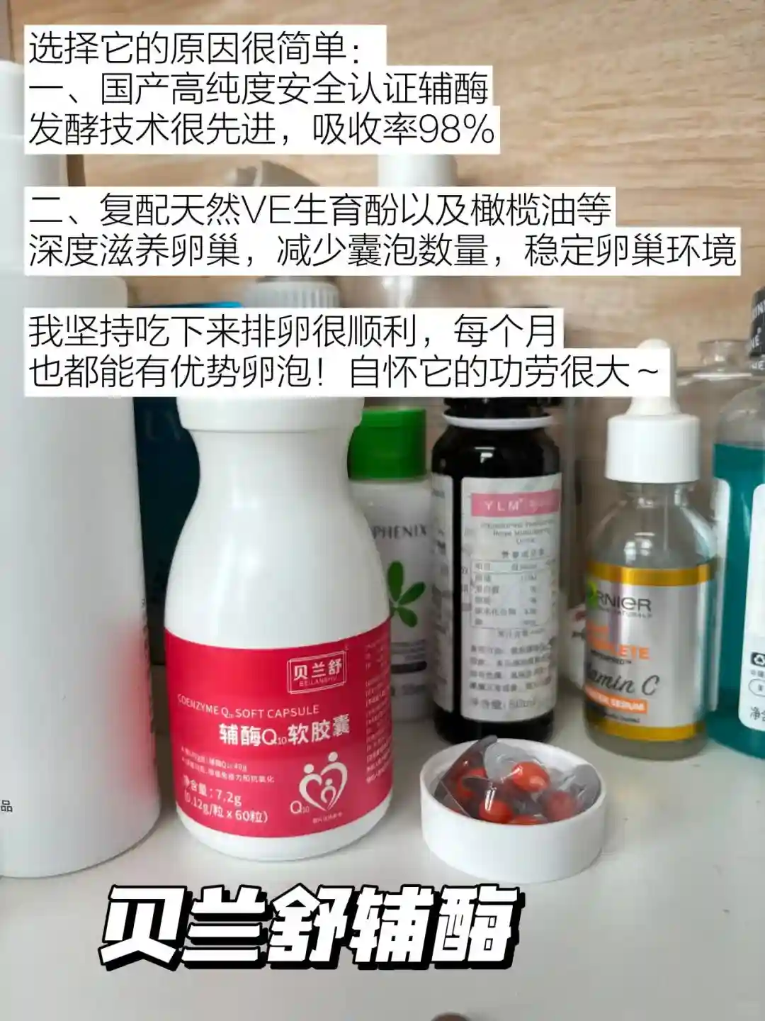 【4】还有就内服补剂啦,虽然一些食物中含有辅酶q10,但是能到的是少之又少。多囊备孕的需要补充辅酶q10,这款贝兰舒辅酶添加了天然生育酚以及西班牙优质基低油,可以助力养优势卵泡、降⬇🐻激素水平,促进卵泡发育