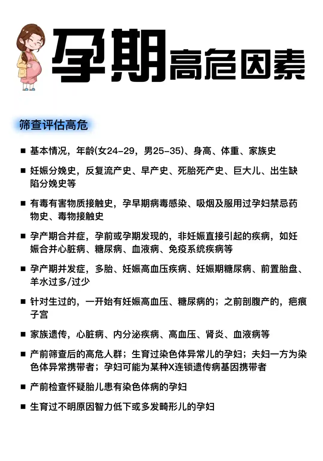 6⃣️产前筛查后的高危人群;生育过染色体异常儿的孕妇;夫妇一方为染色体异常携带者;孕妇可能为某种X连锁遗传病基因携带者