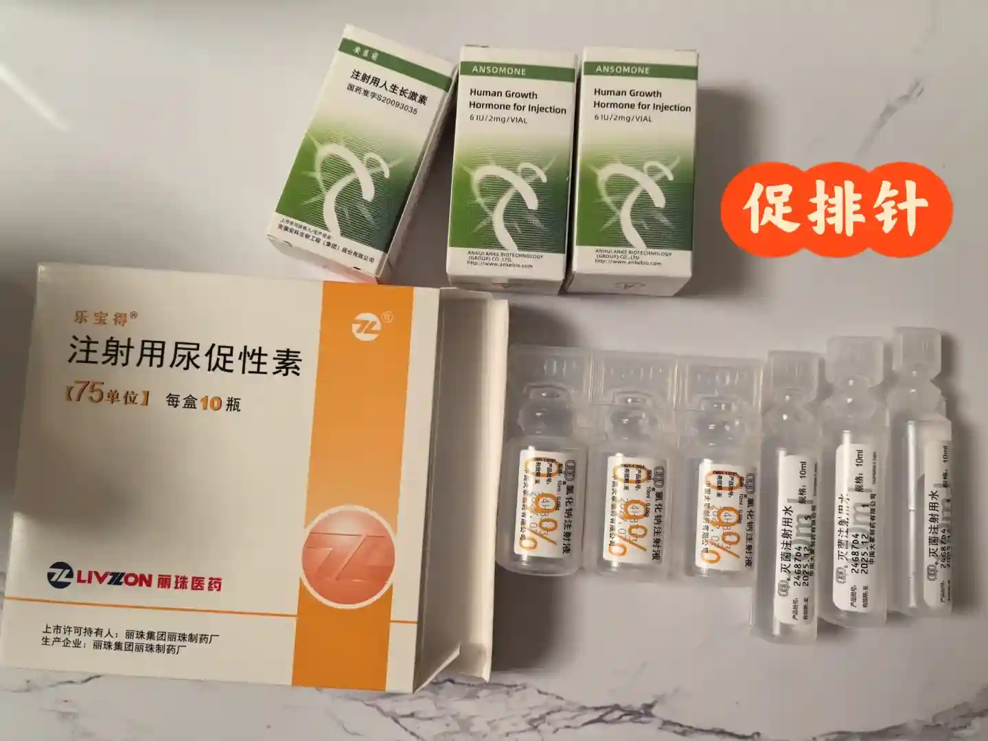 注射用尿促性素(规格:75IU( D )/支),肌内注射.一次225IU.1天1次