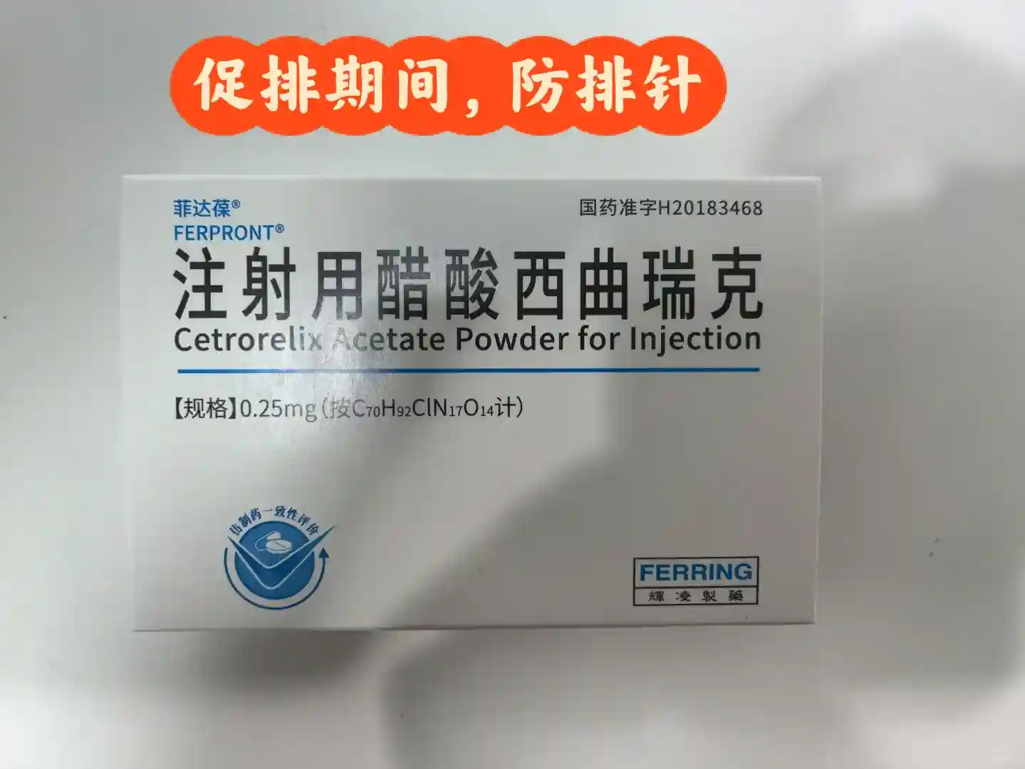 注射用醋酸西曲瑞克|菲达葆[0.25mg(附灭菌1ml注射用水)/支](规格:0.25mg/支)
