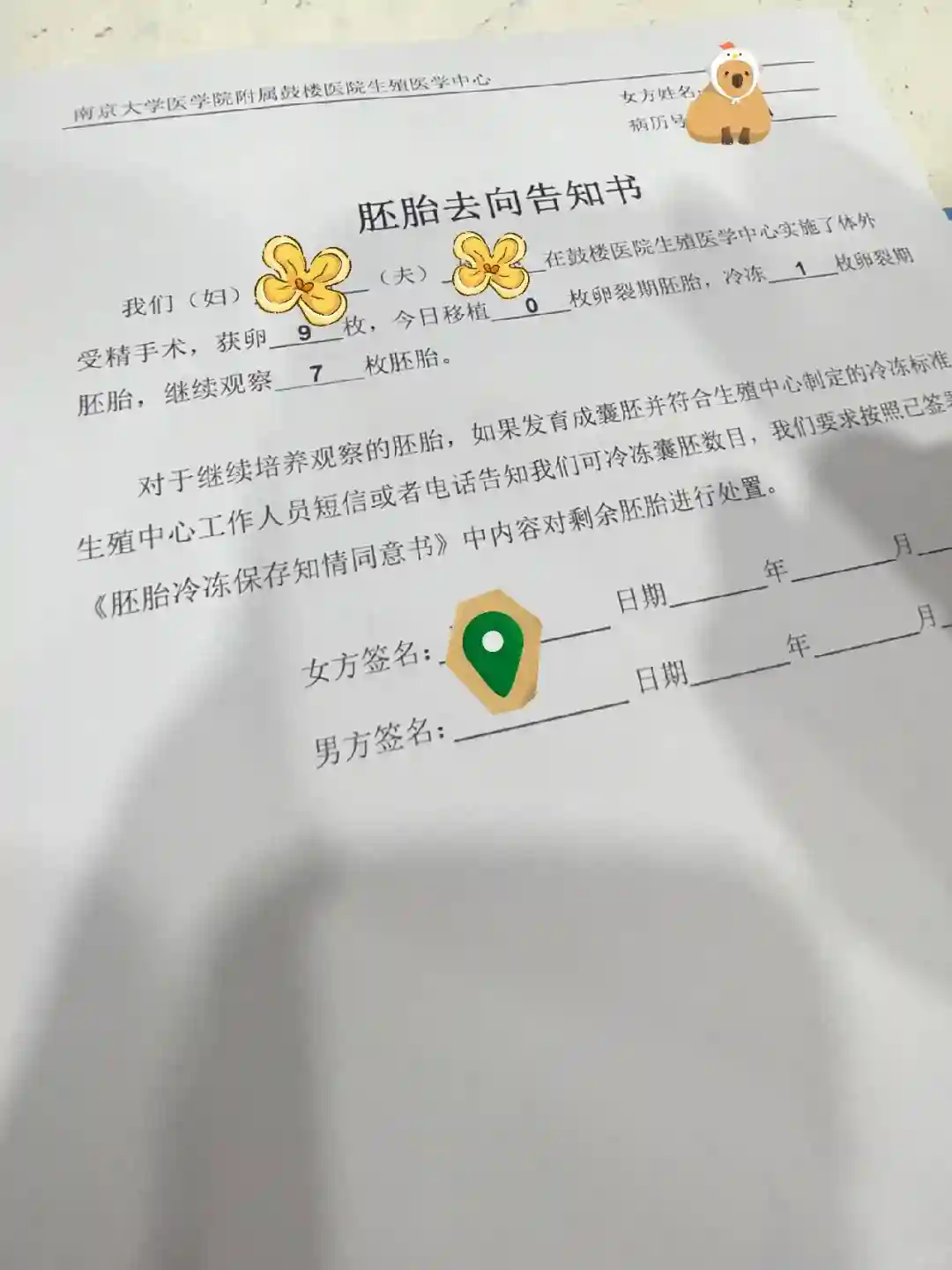 取了9个卵,配成8个,冻了1个, 7个养囊