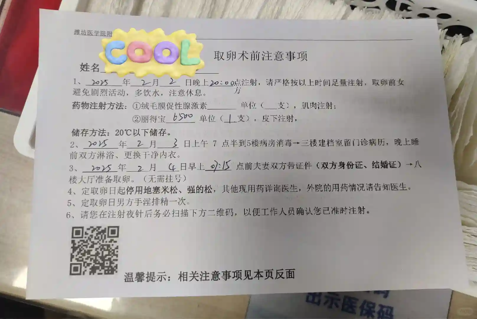 1.28,7:30返院,抽血(不用空腹),做B超,等医生看了卵泡情况和抽血结果后,调整药物剂量,今天加了一盒西曲瑞克,皮下注射