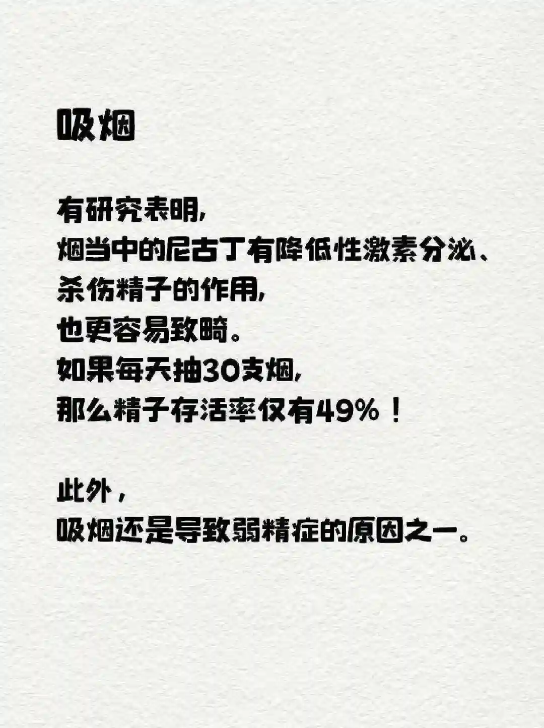 烟当中的尼古丁有降低性激素分泌、杀伤精子的作用,
